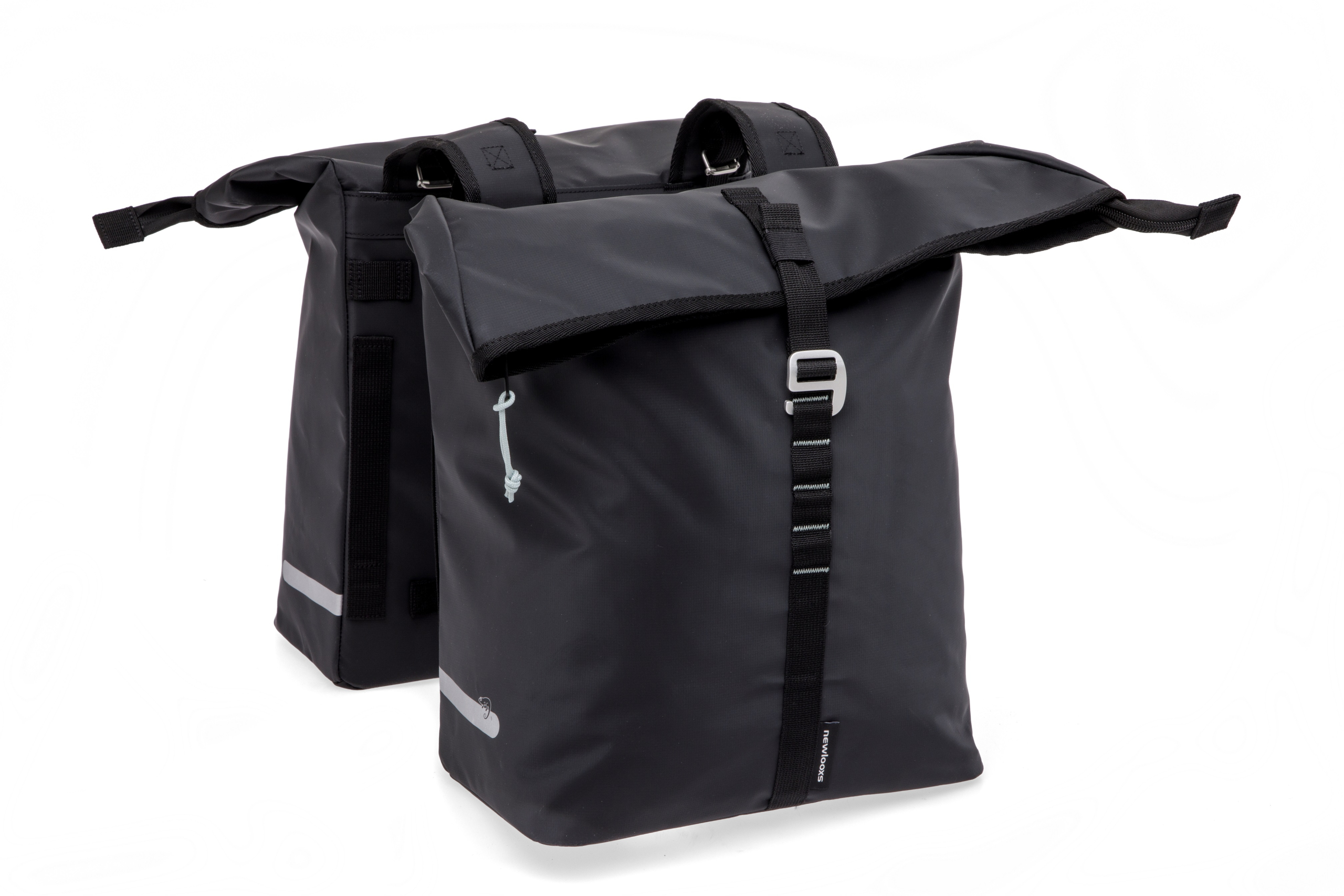 New Looxs Cantos dubbele fietstas. Afmeting: 30 x 16 x 36 cm, inhoud 36 liter in de kleur zwart. Gemaakt van waterafstotend Tarpaulin. Zeer geschikt als boodschappentas. Voorzien van haaksluiting en reflectie.