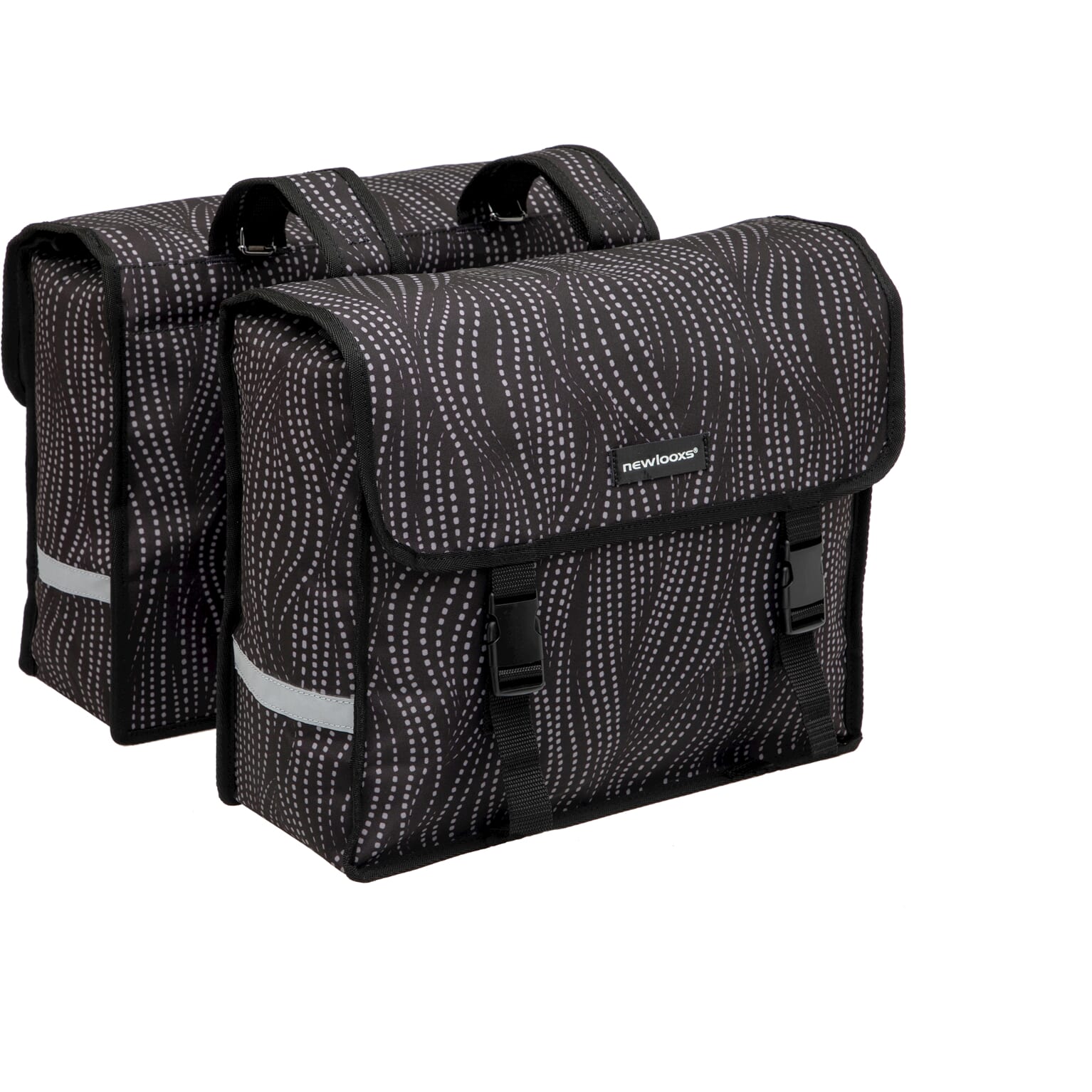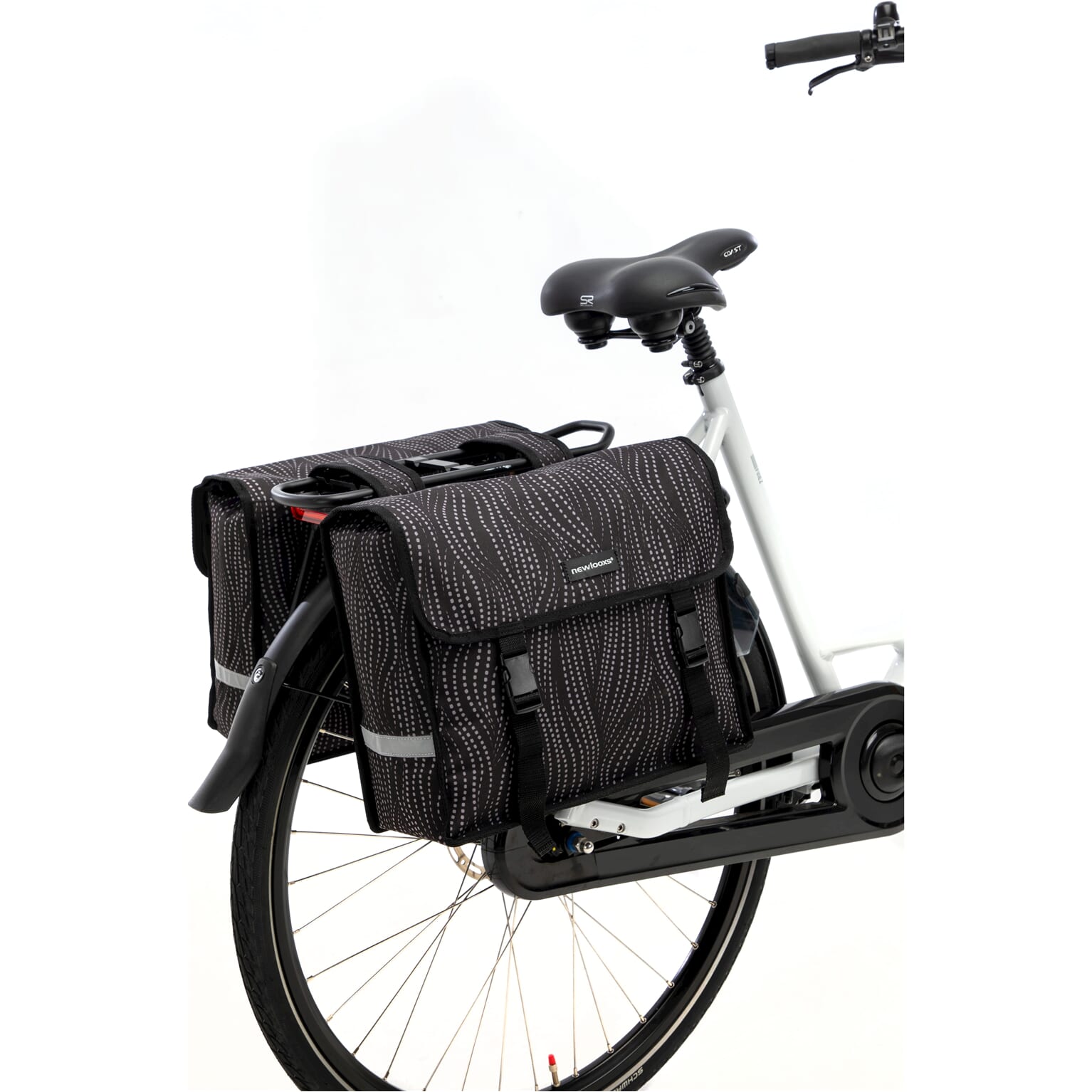 Altijd ruimte bij de hand om wat mee te kunnen nemen op de fiets. Deze lichte en praktische fietstas past op elke fiets. De Fiori Double is een eenvoudige maar praktische fietstas. De tas is niet al te groot en erg lichtgewicht. Handig als je niet zo’n grote fietstas wilt. Toch kan je best wat meenemen, want de tas heeft een inhoud van 30 liter. De dagelijkse boodschappen gaan dus prima. Je sluit het hoofdvak met 2 kliksluitingen. De fietstas wordt aan de bagagedrager bevestigd met riempjes. Dat maakt deze tas geschikt voor vrijwel alle fietsen, ook elektrische. De brug tussen de twee delen van de tas is 18 cm. Je kunt de fietstas extra vastzetten aan de zijkant van de bagagedrager met een klittenband riempje. Je zet de tas 1 keer vast en daarna zit deze goed bevestigd op de drager. De tas heeft 2 banden over de bagagedrager en daardoor kun je nog gewoon je snelbinders gebruiken.