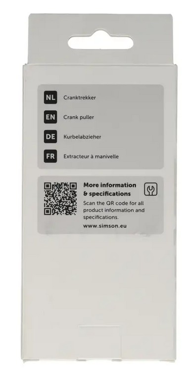 Simson Cranktrekker voor het demonteren van de crank (aan dit onderdeel zijn de pedalen gemonteerd) van de trapas. Verwijder eerst de borgmoer uit de crank. Draai hierna de cranktrekker stevig in het schroefdraad van de crank. Draai vervolgens de binnenste bout van de crank met een ring/steeksleutel richting de trapas. De crank komt zo geleidelijk los van de trapas.