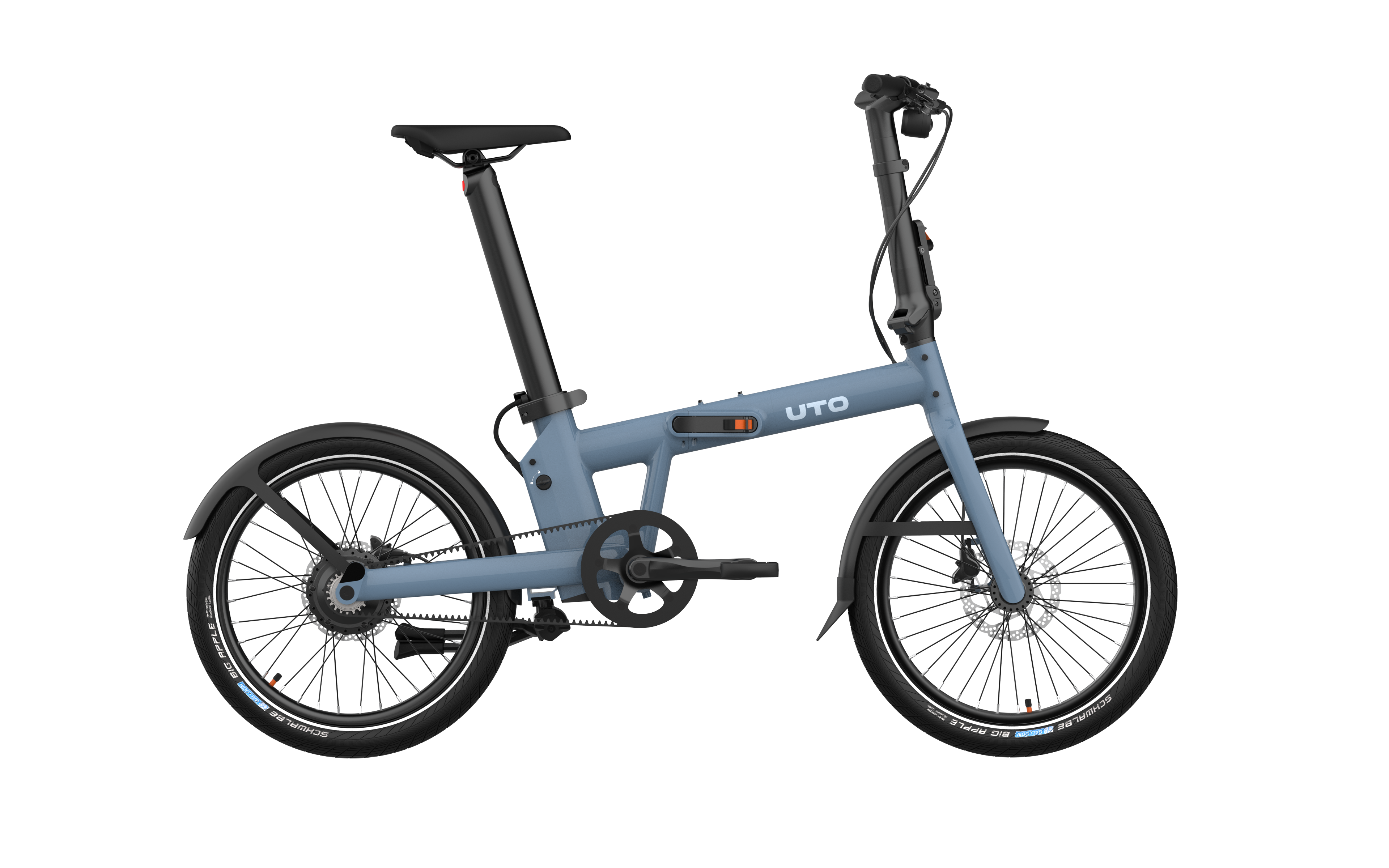 De UTO PRO20: De multifunctionele opvouwbare elektrische fiets, in geheel nieuw design en flink geüpgraded! Deze wendbare vouwfiets (21kg) met 20 inch wielen heeft een range van ongeveer 80km en is daarmee de perfecte keuze voor woon-werkverkeer. Opgevouwen in 10 seconden is hij gemakkelijk te vervoeren voor dagelijks gebruik. Naast het strakke design met gladde lasnaden en kabels in het frame zijn het de details die het verschil maken: geassembleerd in Frankrijk, hydraulische Shimano MT200 remmen, Gates riem, 45Nm 36V 250W dual speed Bafang naafmotor met automatisch schakelsysteem, krachtsensor, uitneembare Samsung accu (36V 10 Ah) met ABUS vergrendelingssyteem, inklapbaar stuur, SP connect houder, spatborden van gerecycled plastic, midden standaard, Schwalbe big apple banden en een geïntegreerd achterlicht. Verkrijgbaar in 4 kleuren: antracietgrijs, gerookt groen, oceaan blauw en taupe. Passende achterdrager: EVAC43. Passend voorrek: EVAC44